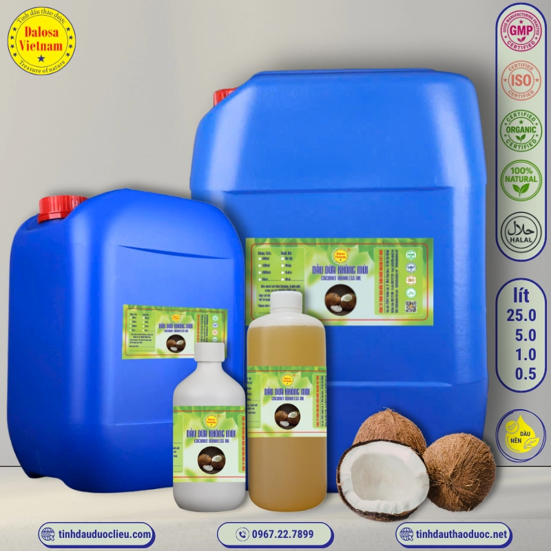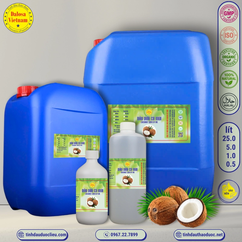 Công ty TNHH Tinh Dầu Thảo Dược Dalosa Việt Nam là đơn vị chuyên cung cấp dầu dừa và các sản phẩm dầu nền từ thiên nhiên. Với hơn 20 năm kinh nghiệm trong ngành tinh dầu, Dalosa nhập khẩu các sản phẩm dầu dừa chất lượng từ các quốc gia hàng đầu như Ấn Độ, Indonesia, và Việt Nam.