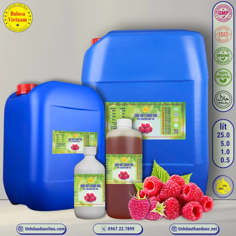 - Phương pháp chiết xuất: Ép lạnh từ hạt quả mâm xôi đỏ.