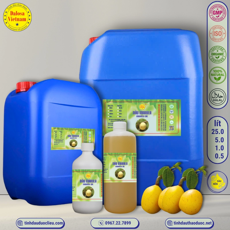 Dầu Marula của Công ty TNHH Tinh Dầu Thảo Dược Dalosa Việt Nam đảm bảo chất lượng và an toàn, được kiểm định nghiêm ngặt tại các tổ chức uy tín. Với khả năng cung cấp lên đến 500kg/tháng, Dalosa luôn sẵn sàng đáp ứng nhu cầu lớn từ các đối tác doanh nghiệp trong ngành dược phẩm, mỹ phẩm và thực phẩm.
