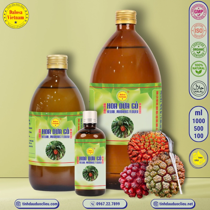 Sản phẩm Tinh Dầu Hoa Dứa Gỗ – Kewra Essential Oil của Dalosa có nguồn gốc từ Ấn Độ, Indonesia, và Việt Nam, đảm bảo tiêu chuẩn chất lượng với chứng nhận ISO 22000:2005, GMP, Kosher và USDA Organic.