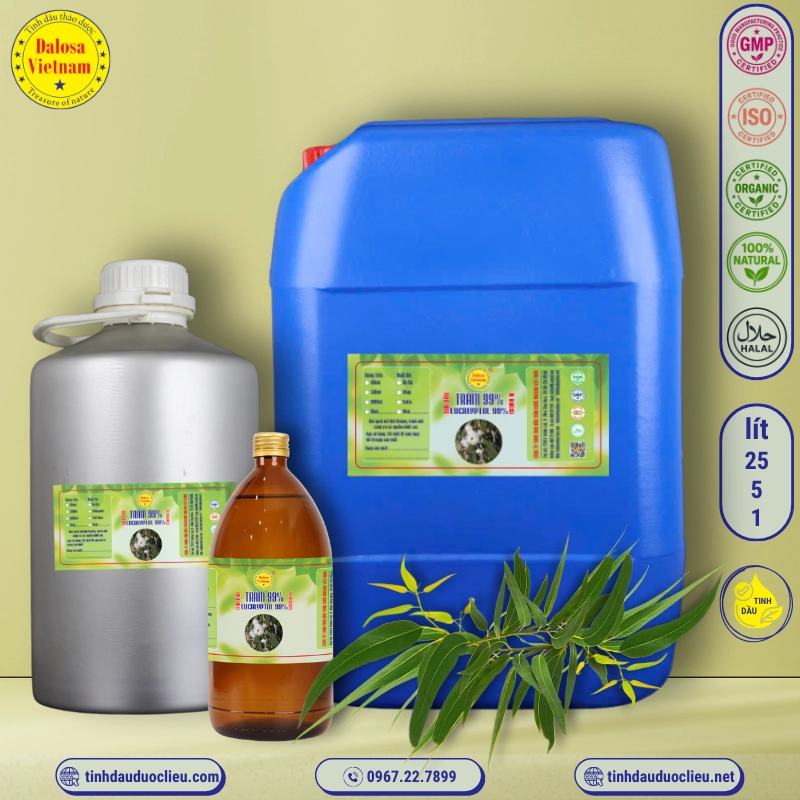 Công ty TNHH Tinh Dầu Thảo Dược Dalosa Việt Nam tự hào là doanh nghiệp hàng đầu Việt Nam chuyên cung cấp tinh dầu tràm 99% – Eucalyptol Essential Oil có nguồn gốc từ India, Indonesia, Singapore.